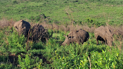 Unser erster Stopp: der berühmte Hluhluwe-iMfolozi Park, das älteste Wildreservat Afrikas. Hier wurde vor Jahrzehnten das vom Aussterben bedrohte Nashorn vor dem Verschwinden gerettet. Die Landschaft ist traumhaft: sanfte Hügel, dichter Busch, weite Ebenen – genau so, wie man sich Afrika im Kopfkino vorstellt.
